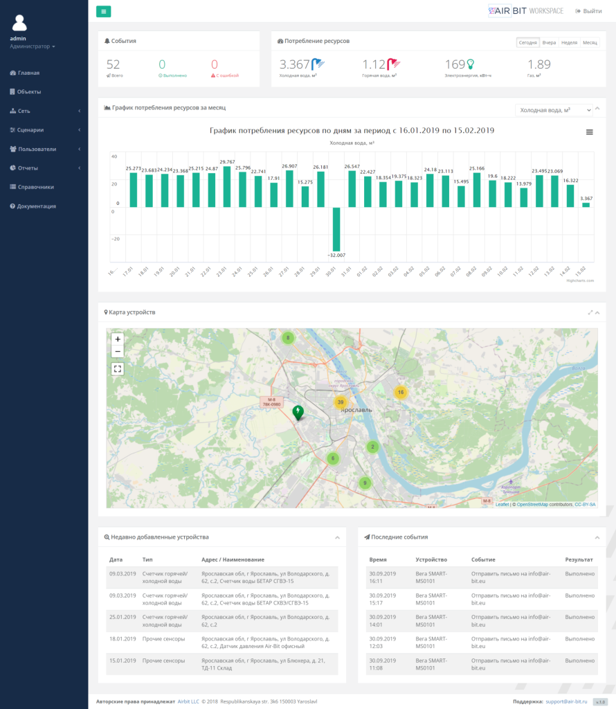С его помощью специалисты компаний-заказчиков оперативно получают информацию о состоянии контролируемых объектов, управляют устройствами, видят статистику в виде таблиц и графиков и анализируют ее. Заказчик может работать с данными на любом устройстве, подключенном к сети Интернет, в личном кабинете AirBit Workspace.